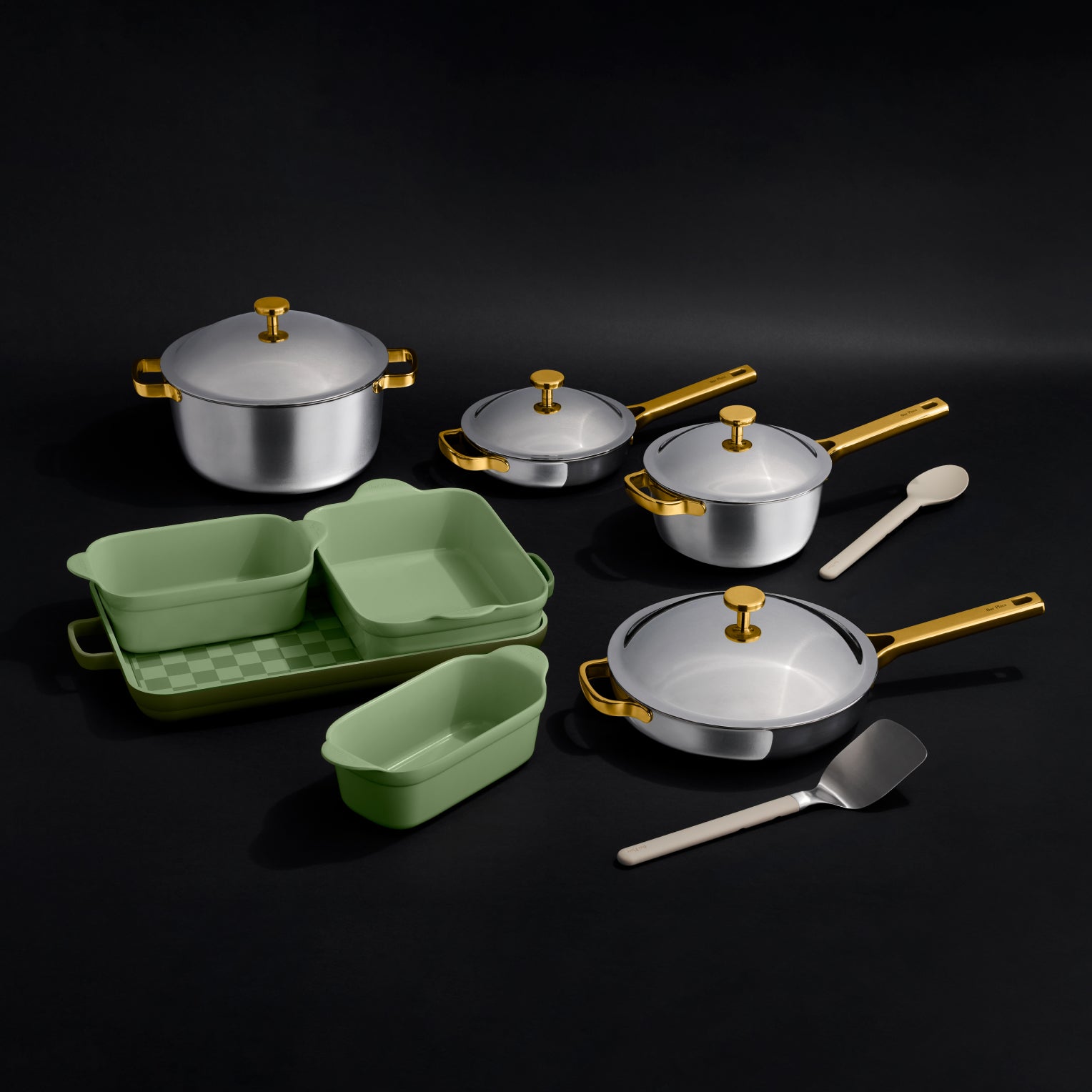 Chaque pièce présente une construction à trois feuilles qui combine la résistance thermique de l’inox ou de la fonte avec la praticité d’un revêtement anti-adhésif. Les modèles originaux Always Pan et Perfect Pot (et leurs versions mini) sont également disponibles dans notre gamme de couleurs emblématiques, tandis que cette batterie de cuisine a un extérieur chromé.